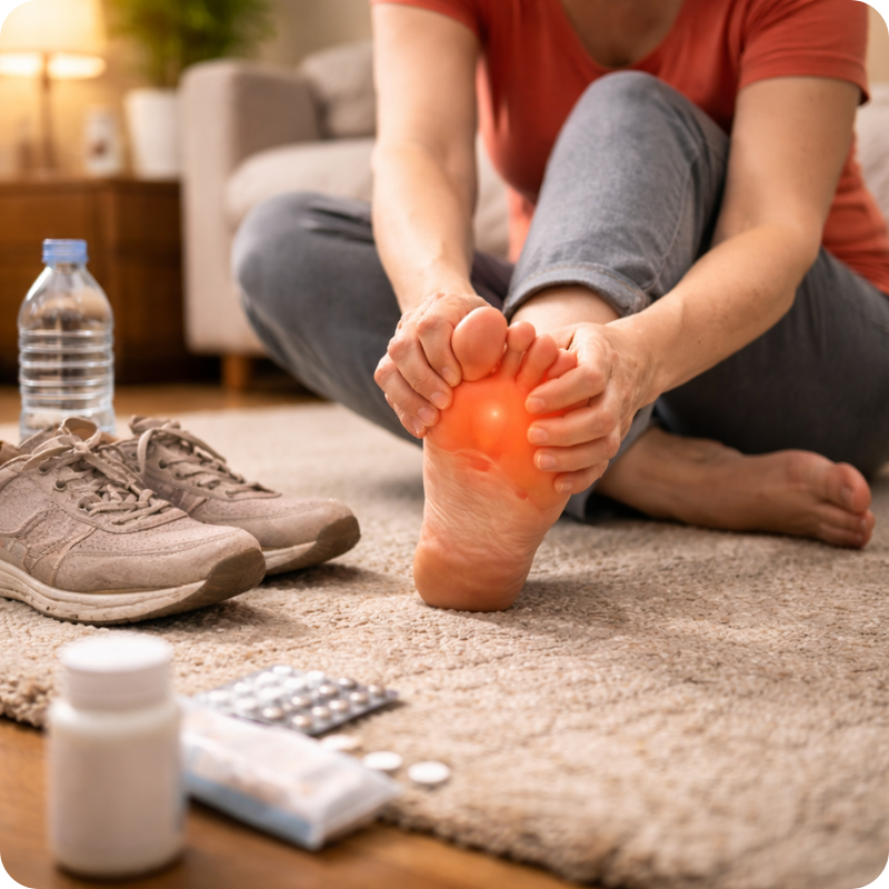 ProStep™ pomaga zmniejszyć ból stóp i pięt, odciąża newralgiczne obszary oraz poprawia komfort i pewność chodzenia — bez leków i bez ograniczeń w codziennym ruchu.